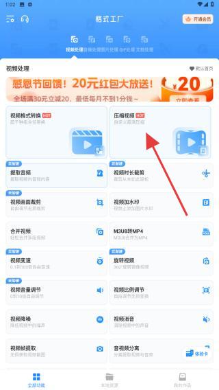 1、打开格式工厂,在首页功能列表中找到压缩视频选项,点击进入。