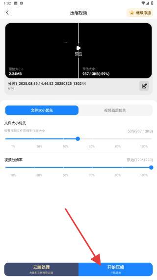 3、在压缩视频设置页面,可通过以下方式调整参数、平衡体积与画质,调整好后点击开始压缩。