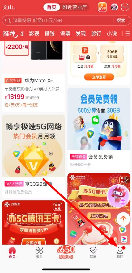 1、打开10010联通网上营业厅APP,点击底部导航栏中的我的。