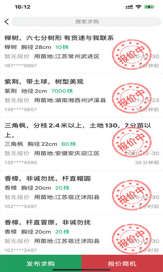 有任何苗木采购需求可以发布到求购大厅,方便他人直接在线报价,快速对接优质资源。