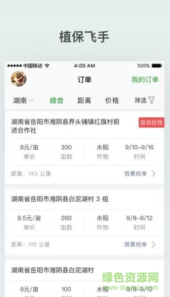 过去我们的植保团队寻找作业订单往往需要去农场询问或通过农资渠道,获取的订单不稳定且成本较高,而现在大疆农业服务平台上线后,植保队通过 APP 中的【订单服务】 “抢”单即可作业。