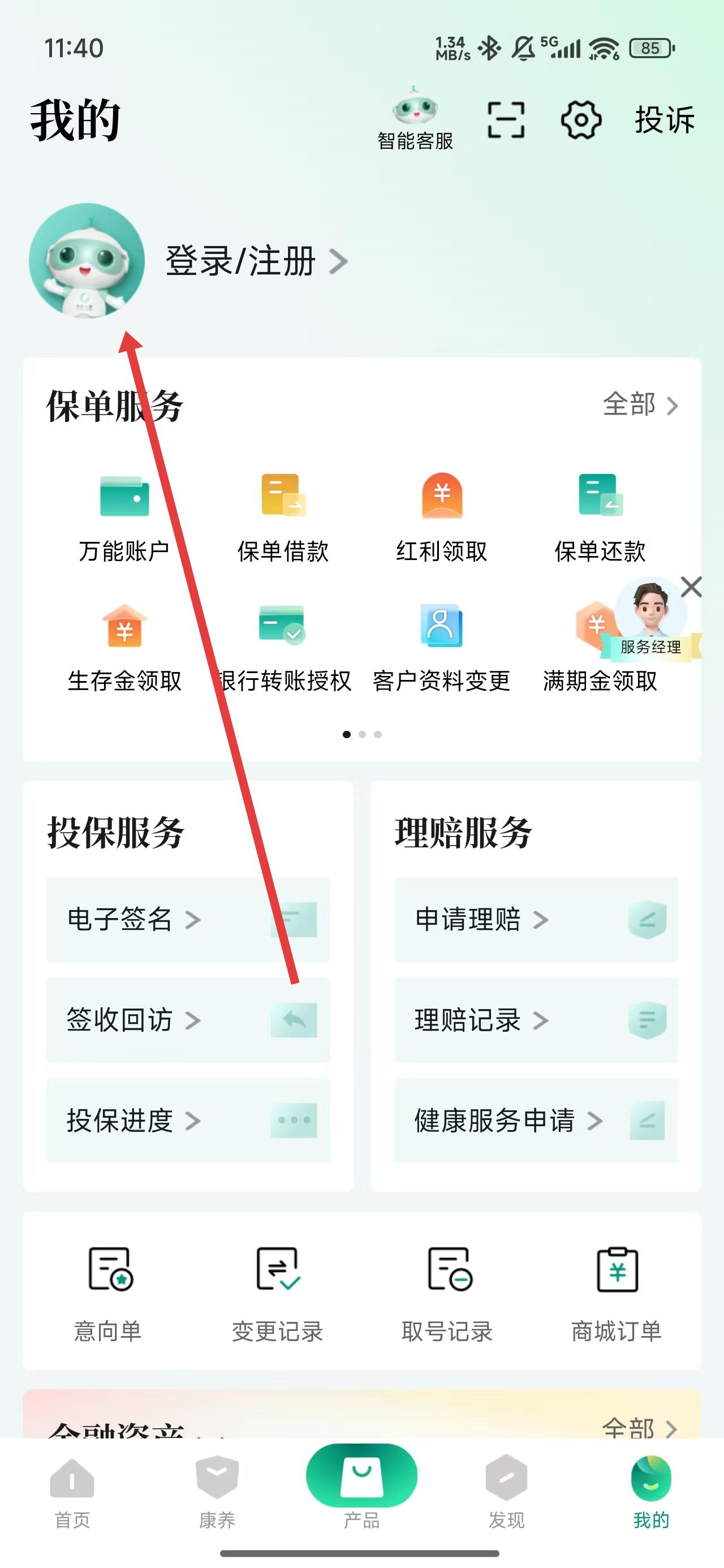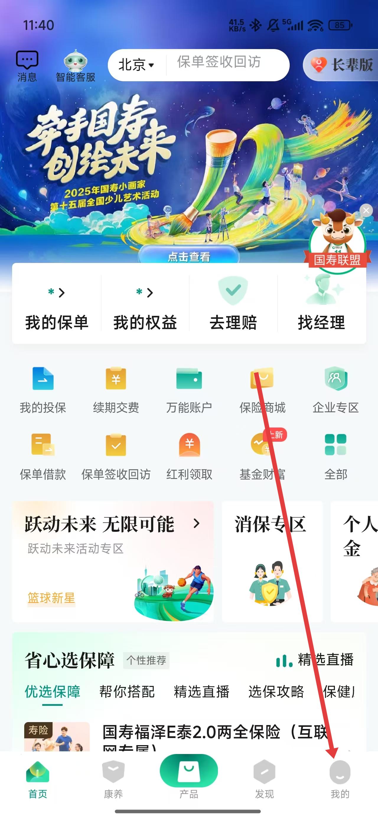1、进入到中国人寿寿险app首页中,点击我的按钮可进入到我的主页。