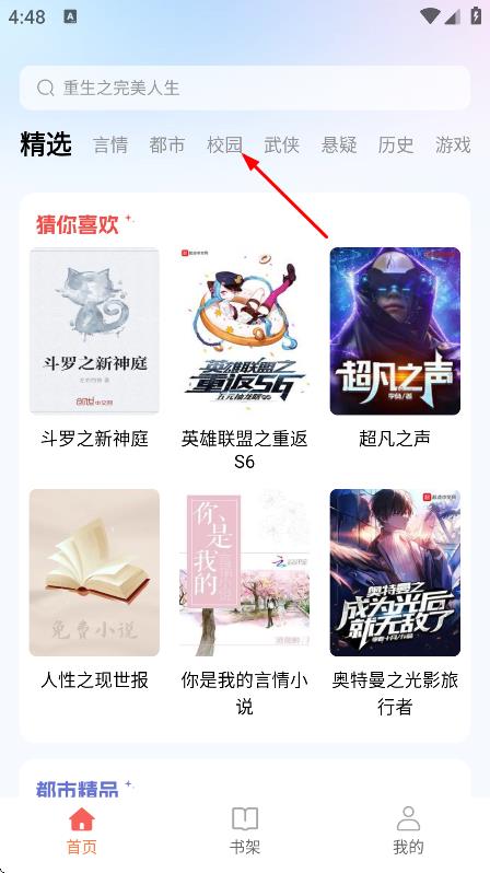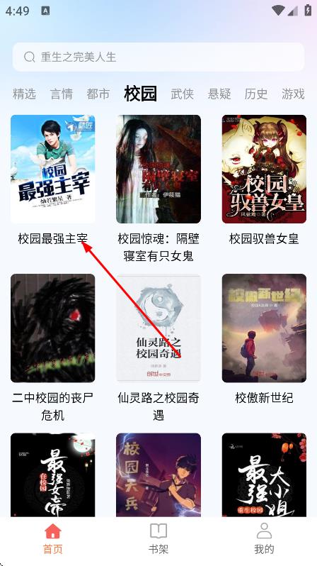 2、在软件主页面,点击校园,切换到校园类书籍列表页面。