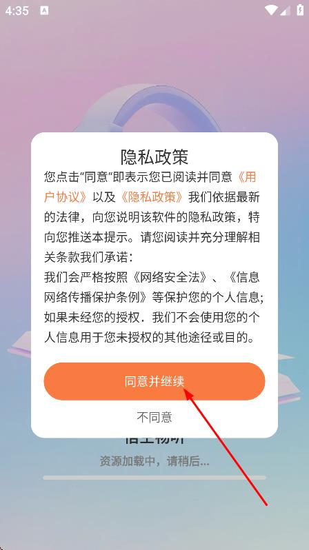 1、在隐私政策弹窗中,点击同意并继续,进入软件主页面。