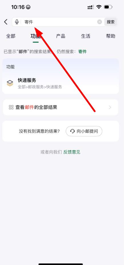 1、打开中国邮政软件,点击顶部搜索栏,输入寄件后点击搜索。