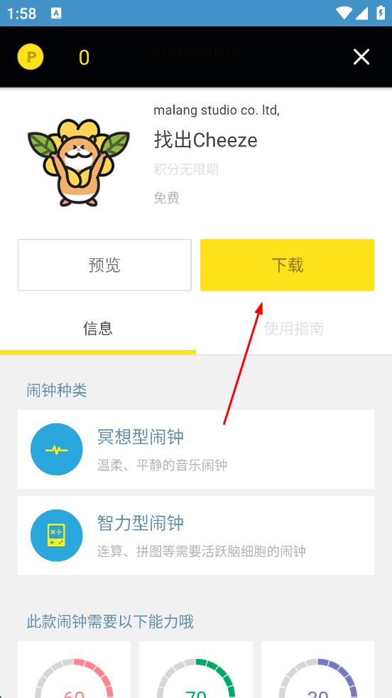 4、选择完成后,进入“找出Cheeze”相关页面,点击“下载”按钮,即可开始下载该内容。
