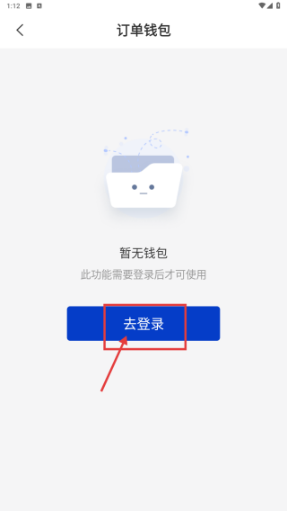 3、在订单钱包界面,点击去登录按钮,进入登录页面。