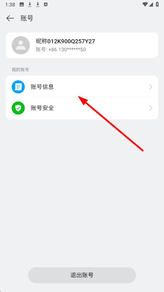2、在账号相关界面里选择账号信息选项,并点击进入该界面展示了账号的基本信息。
