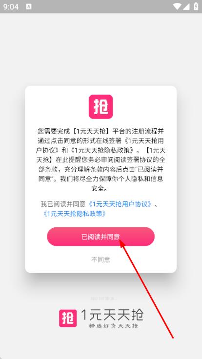 1、点击同意在线签署1元天天抢用户协议,确认已阅读并同意即可。
