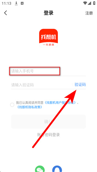找靓机App的登录步骤