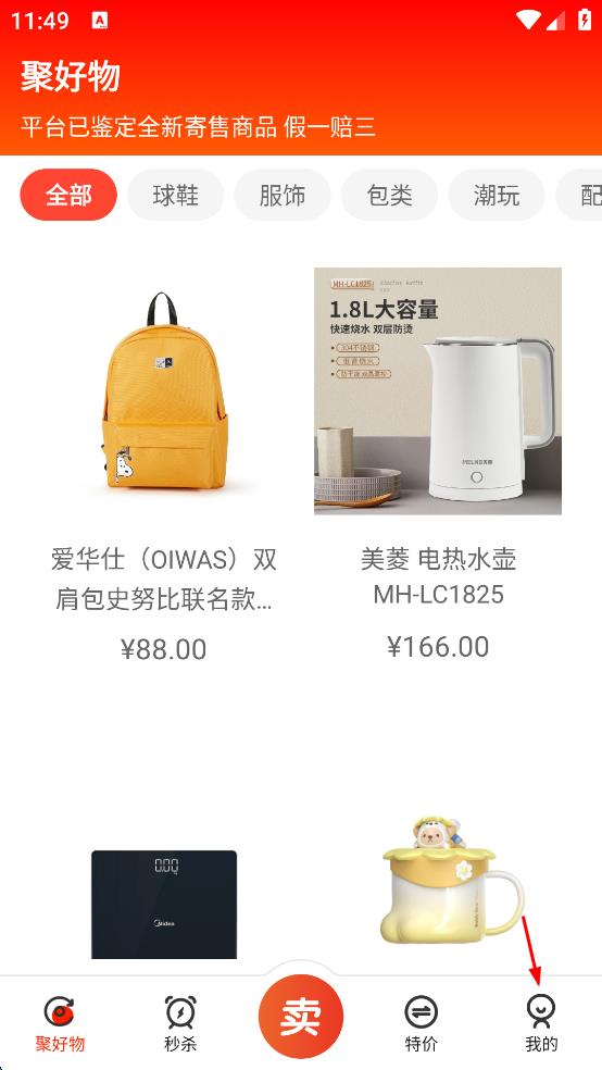2、进入聚好物页面后,能看到各类商品展示,若要登录账号,点击页面右下角的“我的”选项,进入个人相关界面。