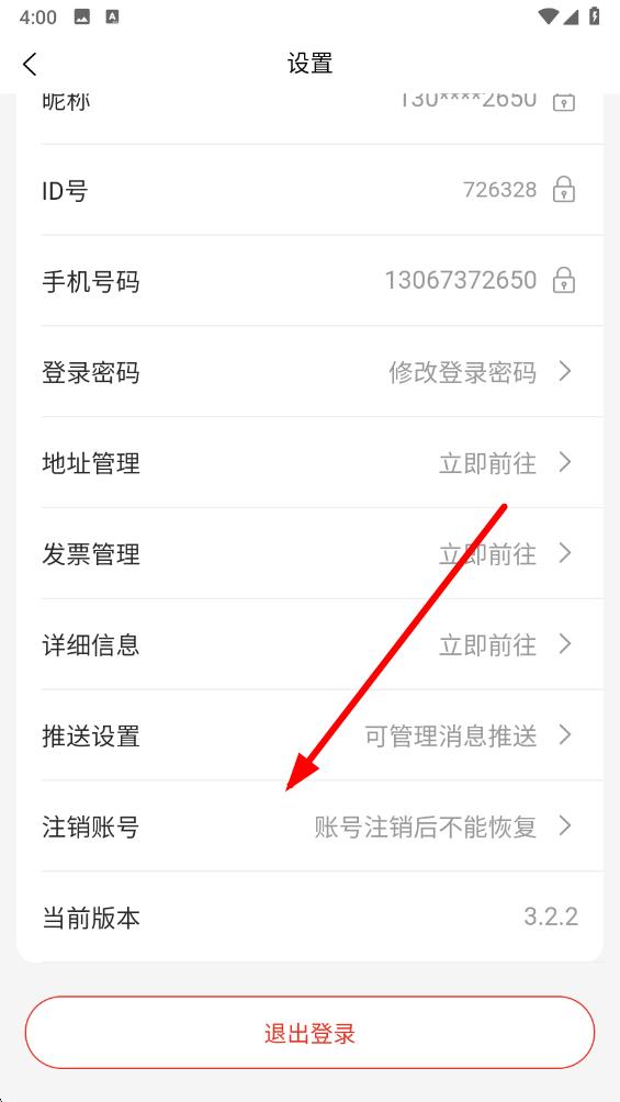 2、在设置界面里下滑找到注销账号选项点击进入。