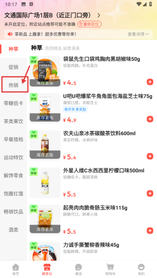 2、在商品选购页面,点击热销分类标签,筛选出热销商品列表。