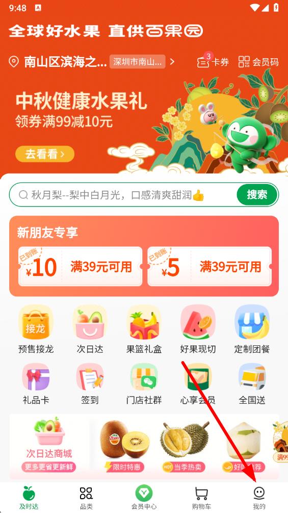 1、打开百果园app,点击底部导航栏最右侧我的选项,进入个人相关界面。