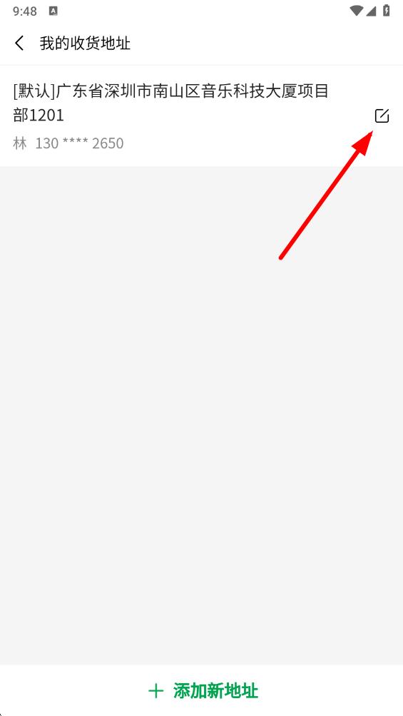 3、在收货地址管理页面,点击要修改地址右侧的编辑图标。