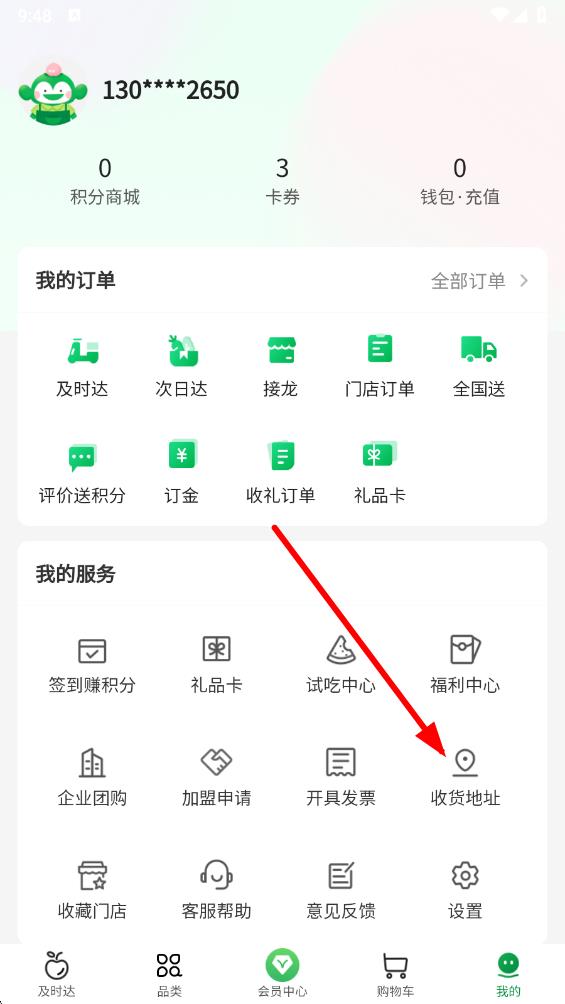 2、在个人界面中,找到我的服务板块,点击收货地址选项,进入收货地址管理页面。