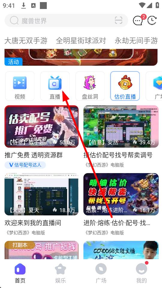 3、在直播分类页面,浏览选择感兴趣的直播内容,比如梦幻西游电脑版直播。
