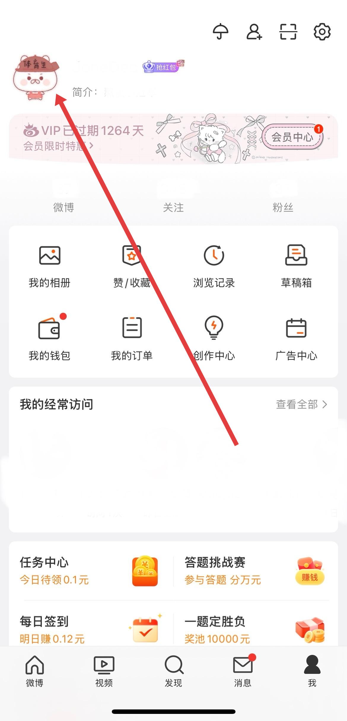 1、打开微博后,进入我的页面,点击左上角自己的微博头像,进入自己的微博主页。