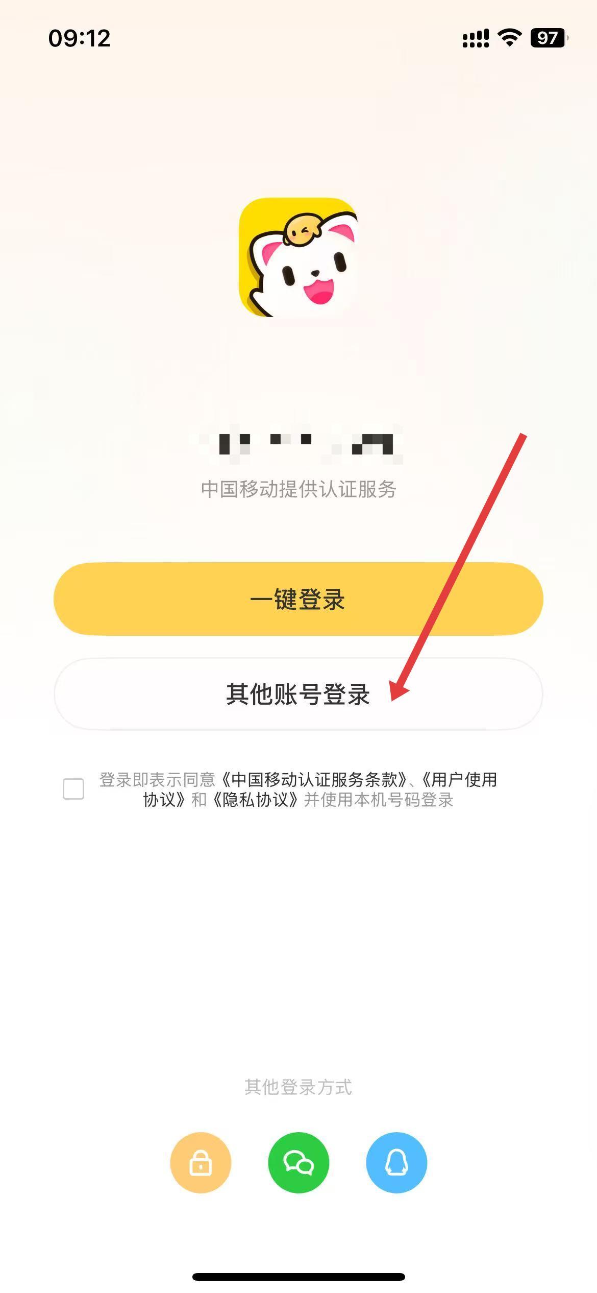 2、进入登录页面后,点击其他账号登录选项。