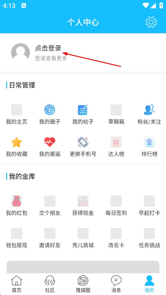 2、在个人中心页面,点击“点击登录”,进入登录界面。