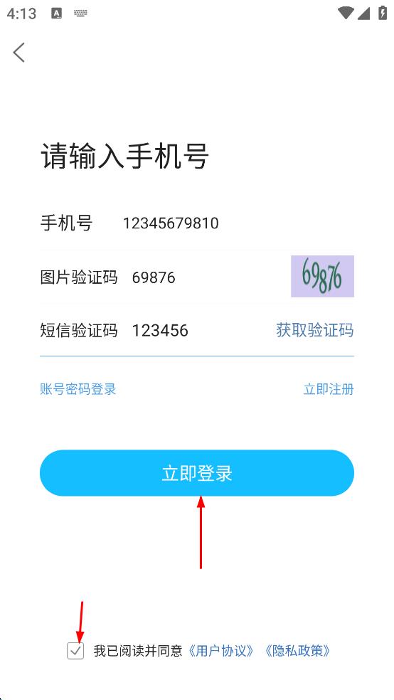 4、勾选“我已阅读并同意用户协议,隐私政策,点击“立即登录”按钮,完成登录。
