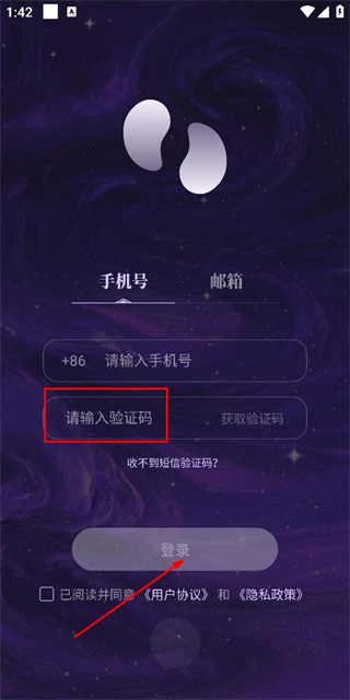 1、在使用协议隐私政策弹窗中点击同意按钮,进入登录页面。