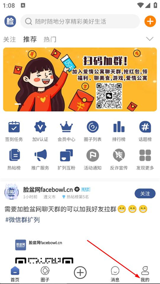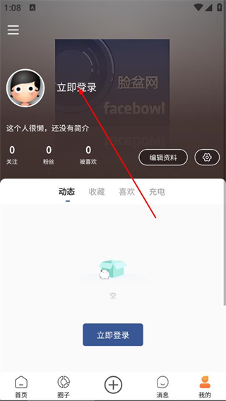1、在脸盆网首页,点击底部我的,进入个人中心页面。