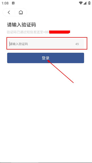 6、在验证码输入页面,填写收到的验证码后,点击登录完成账号登录。