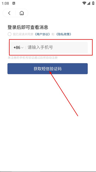5、在手机号登录页面,输入手机号,点击获取短信验证码。