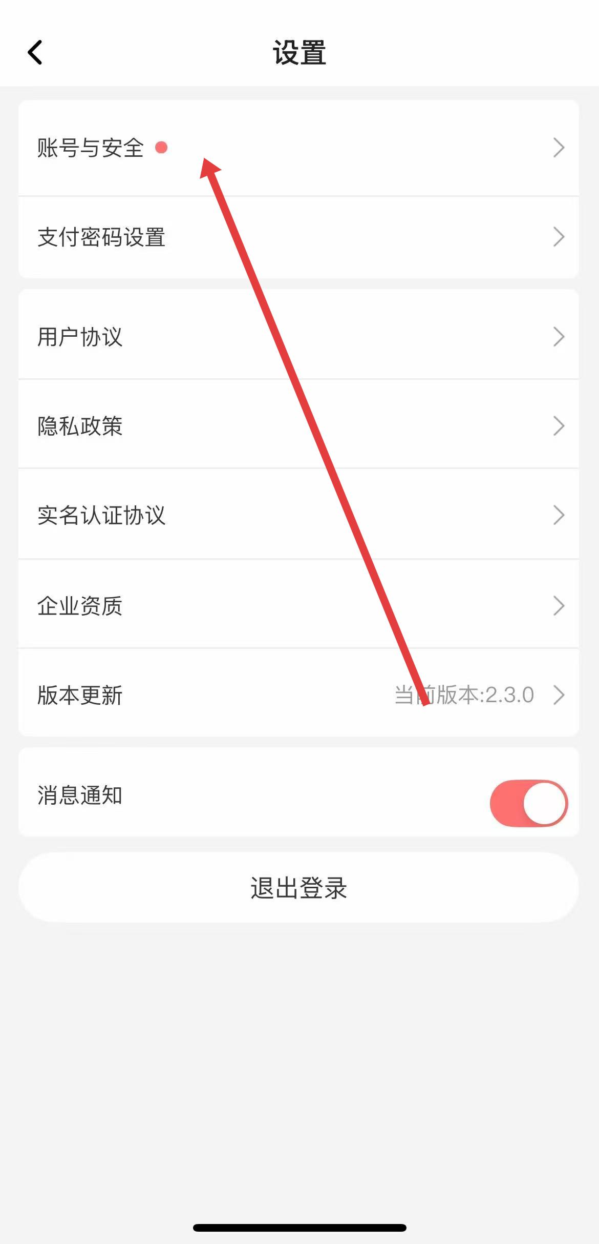 2、进入设置页面后,找到设置页面的第一个选项并点击账号与安全选项。