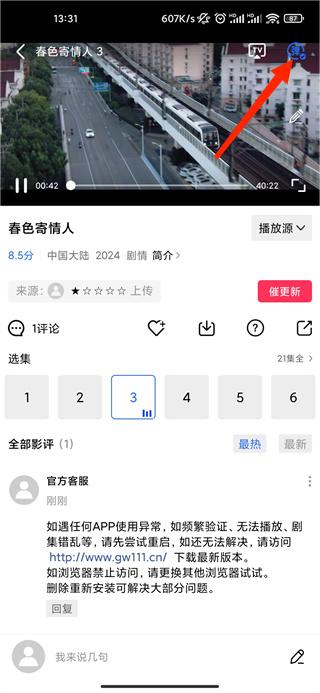 1、在播放页面,点击右上角的弹幕按钮;