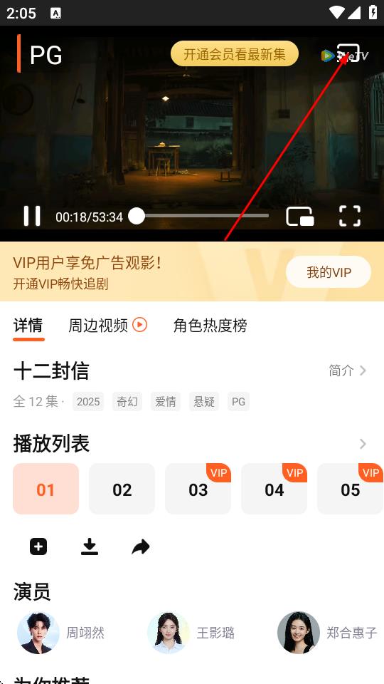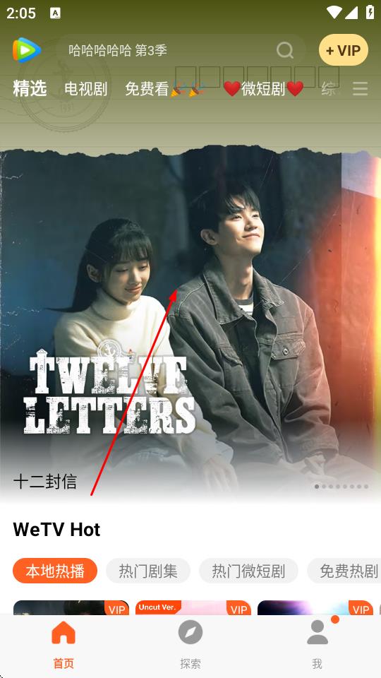 1、打开WeTVAPP,在首页找到想要投屏的视频,比如十二封信,点击进入播放页面。