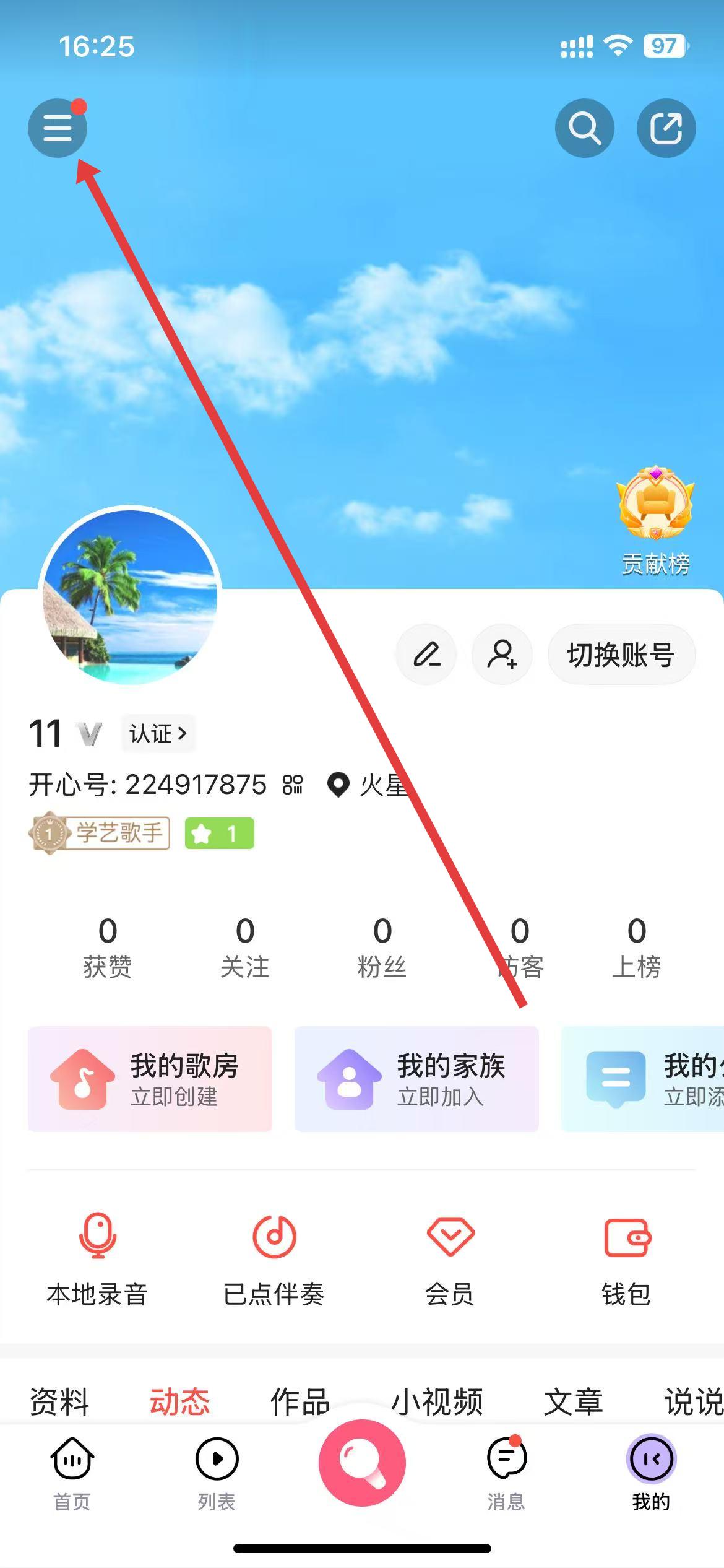 1、在我的页面,点击左上角的三条横线图标,打开侧边栏菜单。