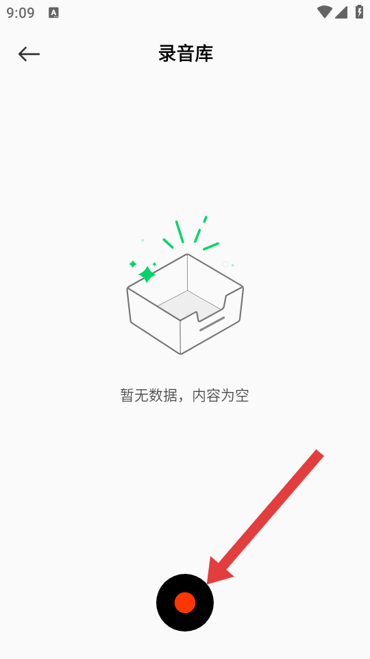 2、在录音库页面,点击底部带有红色圆点的圆形录制按钮,开始录制。
