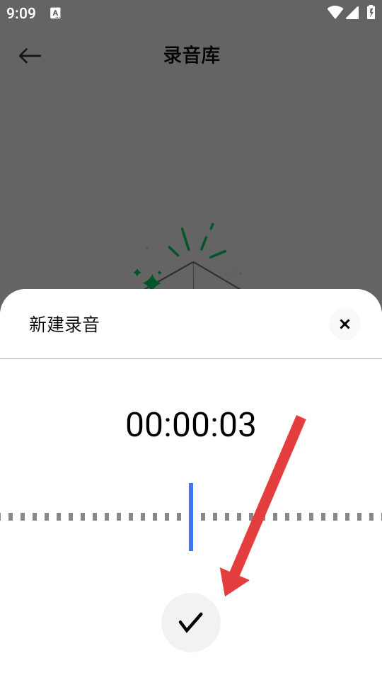 3、录音结束后,点击新建录音界面中的对勾按钮,确认完成本次录音。