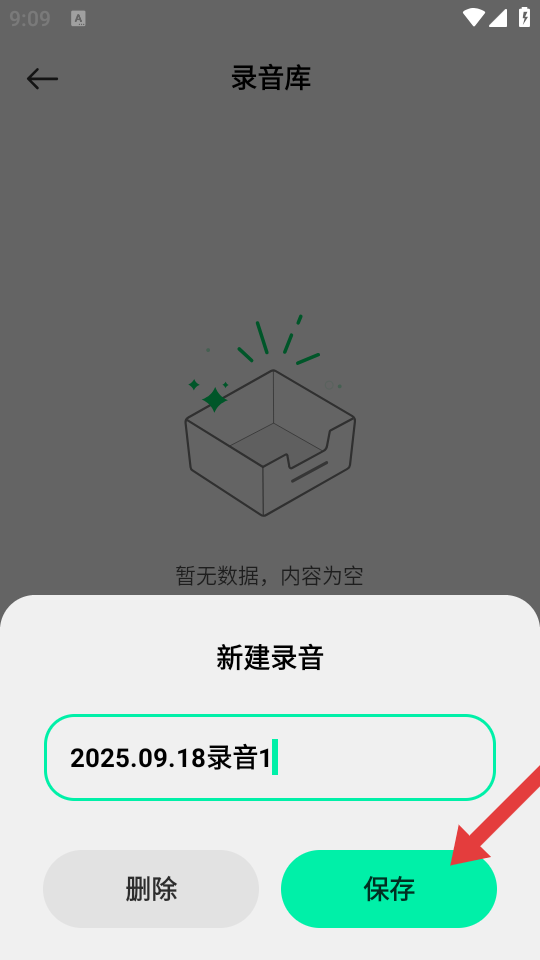 4、在弹出的录音命名界面里,确认名称后点击保存按钮,完成录制与保存。