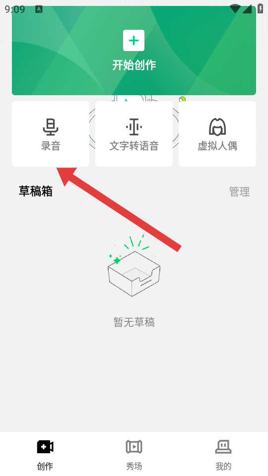 1、进入创作界面后,点击录音选项,进入录音功能对应的页面。