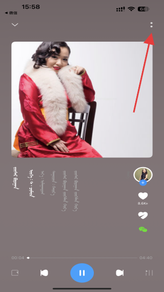 2、进入到播放页面,点击右上角两个点的图标按钮。