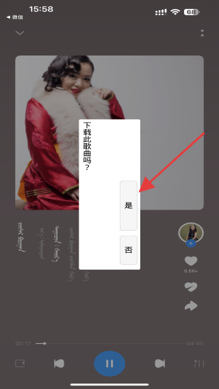 4、点击后,会弹出下载此歌曲吗的提示,点击是按钮即可开始下载。