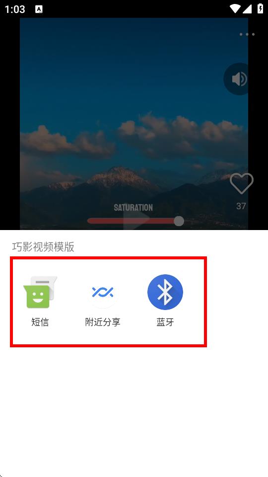 3、点击后会弹出分享方式选项,可选择通过短信、附近分享、蓝牙等方式将视频分享给别人。