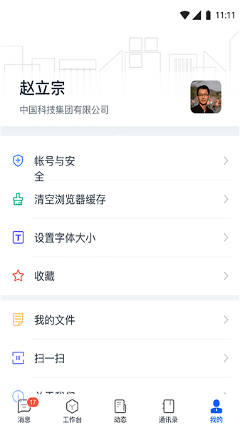 为用户提供个人信息、企业切换、分享、设置等功能;