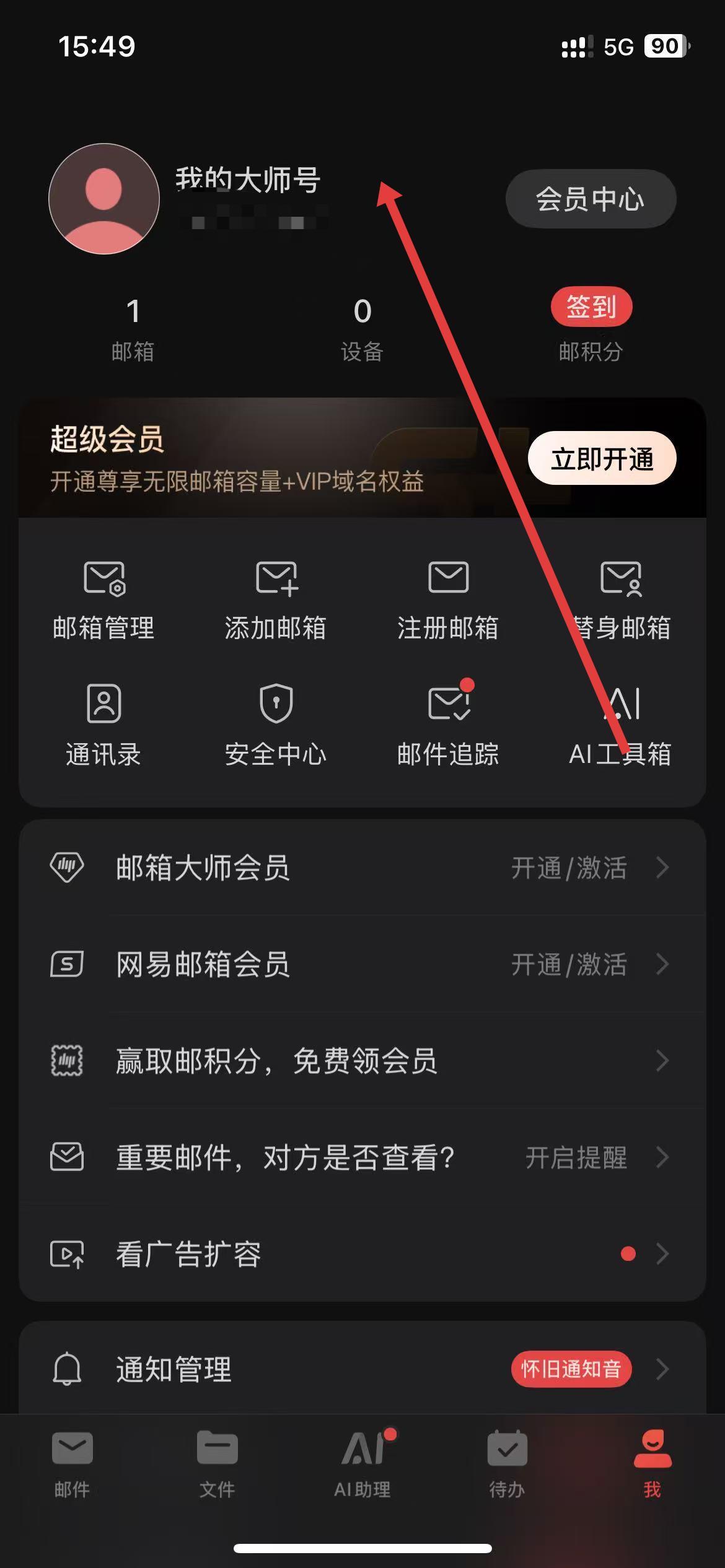 1、打开网易邮箱大师,点击底部我进入个人页面。