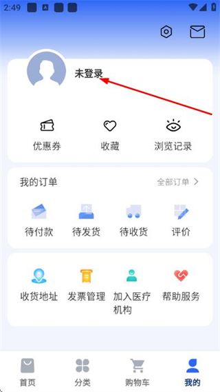 2、在个人中心页面点击登录,进入登录页面。