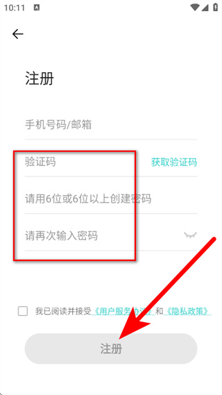 4、输入验证码,设置并确认密码后,勾选协议,点击注册,完成注册。
