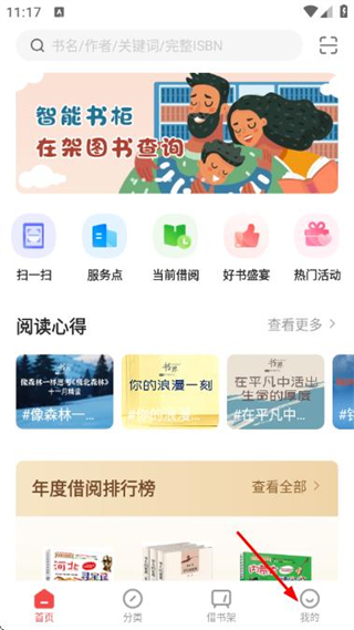 整合在线搜索、扫码查书功能,输入书名或扫描书籍条码即可快速检索馆藏信息,搭配首页新书推荐,轻松找到心仪书籍。