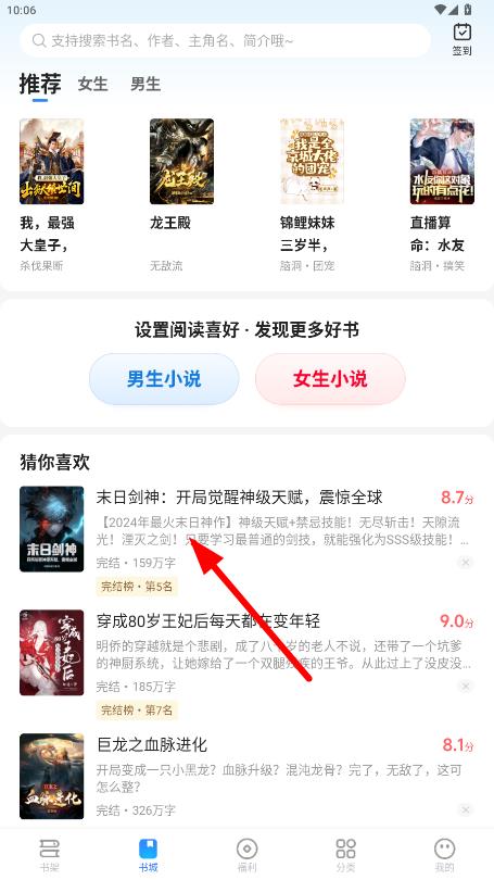-小说推荐,用户在阅读小说之后,能够在平台上看到更多符合自己喜好的小说,平台会不断为用户推荐。