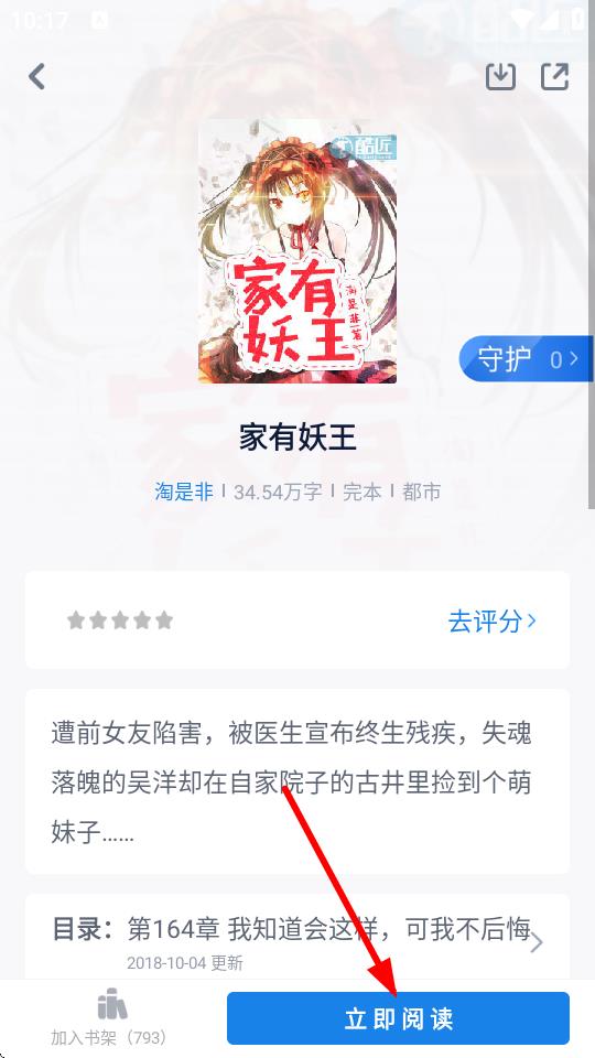 3、在小说详情页中,点击立即阅读按钮,进入小说阅读界面。