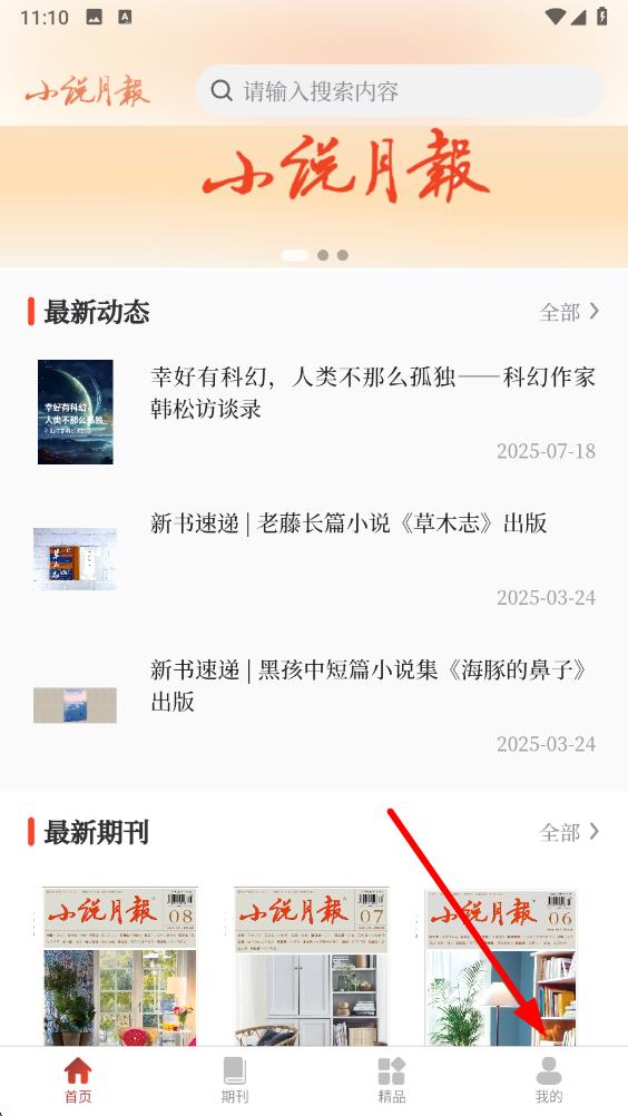1、打开小说月报app,点击底部导航栏最右侧我的选项。