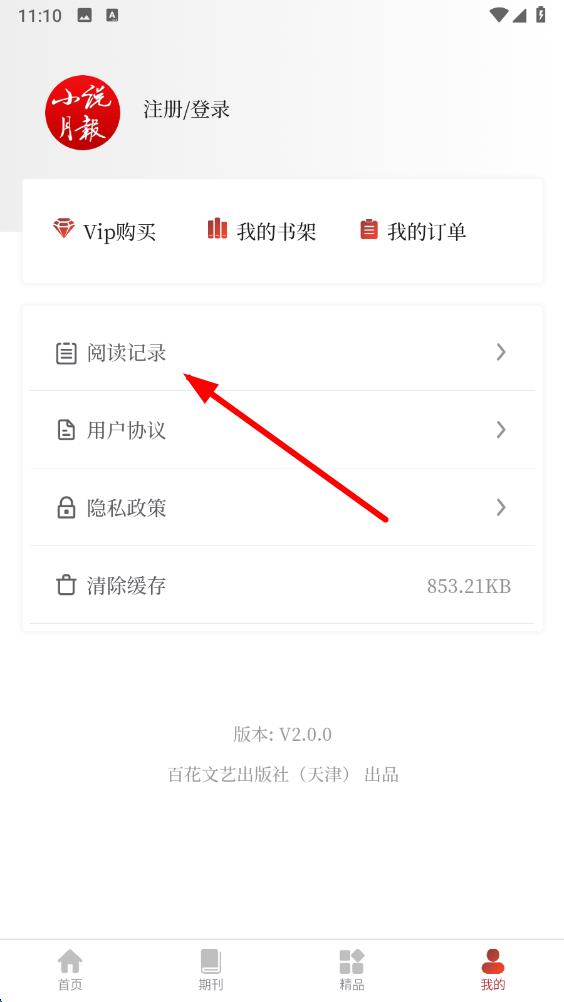 2、在我的页面中,找到并点击阅读记录选项,进入阅读记录页面。