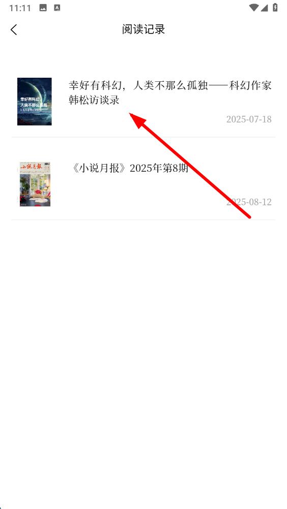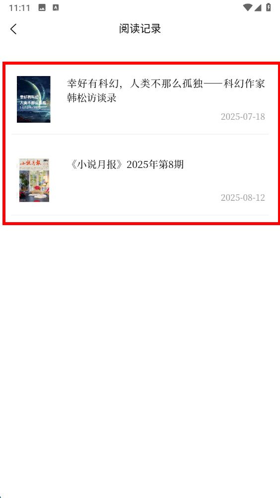 3、进入阅读记录页面后,即可查看所有的阅读记录。